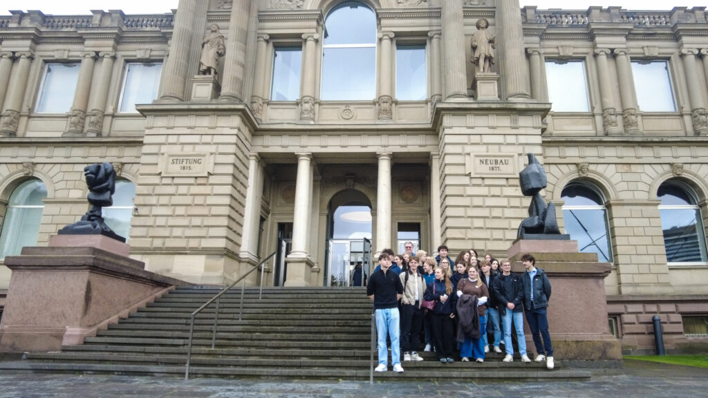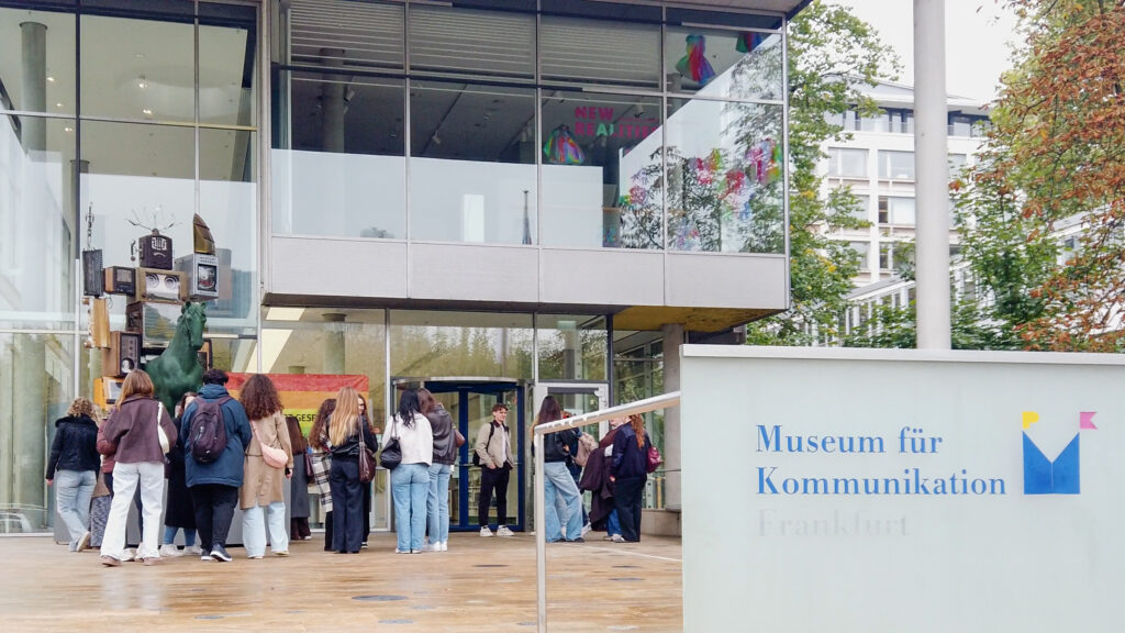 Die Exkursion des dritten Semesters im Studiengang Media, Vertrieb und Kommunikation führte in diesem Jahr nach Frankfurt. Für die Studierenden war sie eine inspirierende Erfahrung, die weit über das hinausging, was im Seminarraum vermittelt werden kann. In der Sonderausstellung „New Realities“ im Museum für Kommunikation tauchte die Gruppe in faszinierende Begegnungen zwischen Mensch und KI ein – von KI-generierten Bildern bis zu von Algorithmen entworfener Mode. Die Dauerausstellung führte eindrucksvoll durch Jahrhunderte der Kommunikation, zeigte frühe Formen von Fake News und historische Beispiele technischer Kriegsführung wie die durchtrennten Unterseekabel von 1898. Abgerundet wurde der Tag durch den Besuch im Städel Museum, wo Werke von Monet, Beckmann oder Laserstein Kunst, Gesellschaft und Geschichte lebendig werden ließen. Dank hervorragender Führungen wurde die Exkursion zu einem eindrucksvollen und lehrreichen Erlebnis.